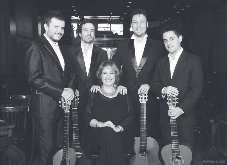 "Desde que empecé a cantar siempre soñé hacerlo acompañada por un cuarteto de guitarras", define Yamila Cafrune y veinticuatro cuerdas sonoras la secundan: Amilcar Valeriani (guitarrón), Aníbal Corniglio (guitarra), Benjamín Ciprián (guitarra) y Moscato Luna (director, arreglador y primera guitarra del Cuarteto). Yamila recorre los escenarios nacionales cumpliendo con su anhelo y cantando un amplio repertorio folklórico donde se incluyen valses, zambas, cuecas, chamamés, chacareras sin olvidar un repertorio criollo y urbano: el mundialmente conocido tango. Todos ritmos que honran a la guitarra y su historia, cantados por Yamila Cafrune con voz firme y decidida